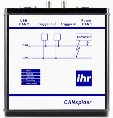 CAN總線干擾發生器CANspider實現了一個高性能的CAN總線測試環境,它不僅可以針對特定的節點進行測試,還能對整個CAN網絡進行測試。用戶能夠通過CANspider 對CAN總線施加任意和可重現的干擾。CANspider能通過改寫總線邏輯電平從而實現ISO11898標準中定義的總線故障的模擬。 |