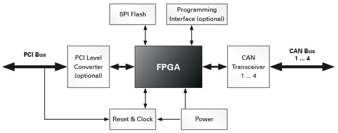 對于硬件設計中的CAN連接,我們提供了多種解決方案。基于FPGA,PCI或PCI Express總線可支持多達四個CAN通道。