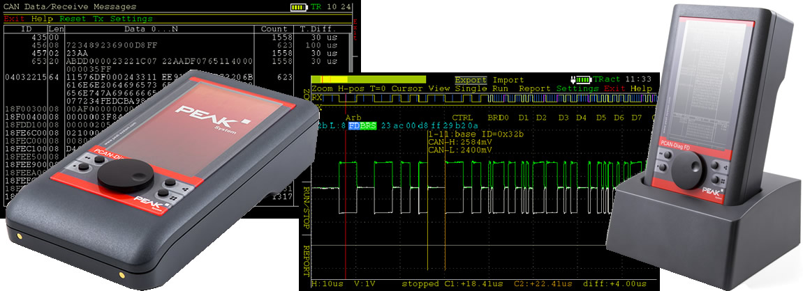 PCAN-Diag FD是一款用于CAN總線通信診斷的手持式診斷工具。可以基于協議層診斷CAN2.0和CAN FD報文,也可以利用示波器功能和測量功能實現物理層測試。