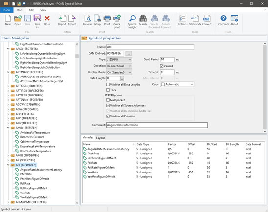 PCAN-Explorer的J1939插件支持所有由標準參數集建立的定義,并提供簡便的方法訪問這些參數。還提供包含所有定義和參數的數據庫。