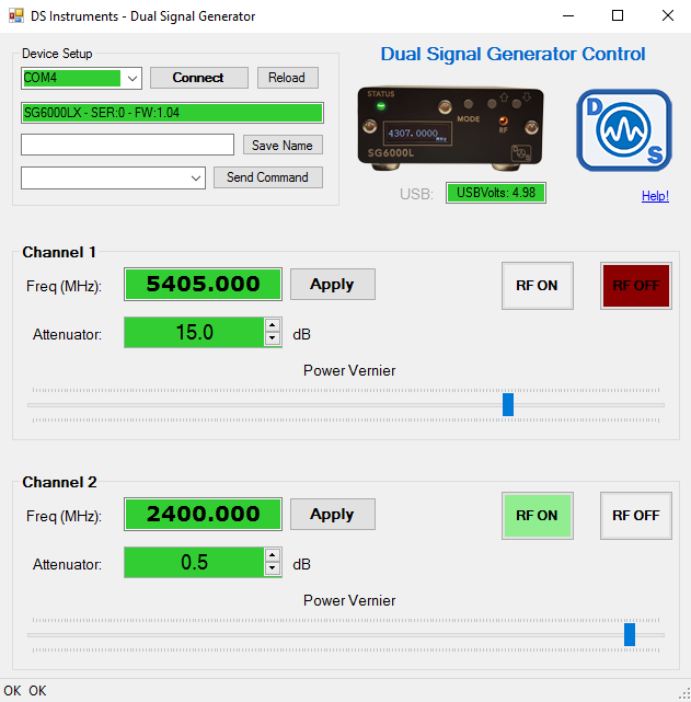 新型SG6000LX雙路RF信號發生器繼續在經濟實惠的超小型RF信號發生器中設定行業標準。SG6000LX能夠使用以極低的成本輕松生成兩路獨立的高質量RF信號,而無須主機PC控制。這個完全合成的,現代分數N型合成器涵蓋的25至6000MHz的7個octaves。最大輸出功率通常高于+10dBm,可以以0.5dB的步進向下調節,或通過內部可變衰減器連續調節。清晰的OLED顯示屏為用戶提供了有用的反饋信息,前置控制按鈕快速替代了USB控制方案。像我們大多數產品一樣,LX很容易適應您的手掌大小,使其成為真正的便攜式和節省空間的設備。 |