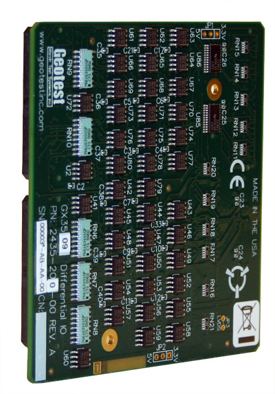 The GX3509 is an 80 channel, differential TTL expansion board designed specifically for the GX3500 FLexDIO FPGA card. Each channel can be configured as an output or input under software control via the GX3500's function calls. The GX3509 can also be orderd pre-assembled with the GX3500 as model number GX3609. |