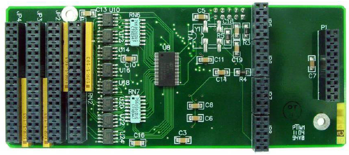 The GX5712 bi-directional I/O module converts 16 differential RS-422 inputs to TTL outputs or 16 TTL inputs to 16 differential RS-422 outputs. One module can be installed on the GX5733 PXI card or up to three modules can be installed on the GX5731 PXI card.