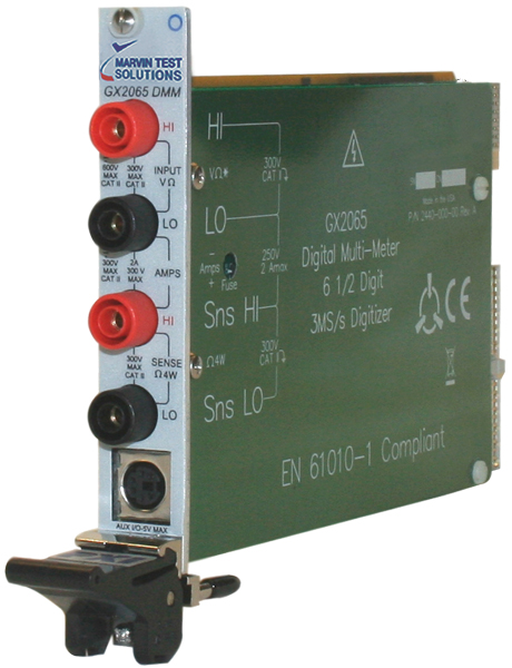 GX2065設計為通用的多功能DMM,并提供與標準臺式DMM相關的所有功能,包括 、 、2和4線電阻測量以及電流測量。此外,GX2065具有3MHz,16位,隔離輸入數字化儀的性能,允許用戶采集和分析波形。內置分析和波形函數,包括RMS、平均值、峰峰值和峰值到平均值的測量。數字化儀存儲最多可存8192個樣本點,支持高至500kHz的頻率和周期測量。其外部TTL觸發通過PXI總線或者前面板可用于DMM測量觸發。 |