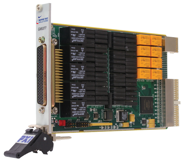 GX6377共配置3個高電流,獨立繼電器-5個10A,A型;4個2A,A型;4個2A,C型,雙16×2繼電器矩陣的額定值為500mA,可硬件配置為16×4矩陣,或者軟件可配置為32×2矩陣。