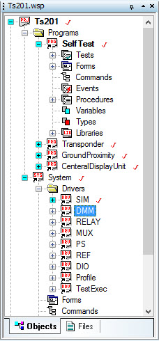 其他子模塊:System, Driver和 Program模塊包含其他子模塊,比如Form,Commands,Events,Procedures,Variables, Types以及Library。測試代碼會根據其針對的類型,如針對UUT(Program),針對系統(System)或針對儀器(Driver)來決定是否“分割”為適當的子模塊。 |