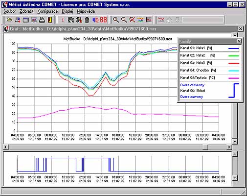Software is designed for communication with MS5D, MS5 loggers through serial link RS232, USB port, RS485 network, Ethernet interface or via a modem. It enables reading information on actual state and configuration of logger, modifying logger parameters, reading measured values from logger′s memory and displaying of actual values from logger′s inputs. It is possible to view and print out recorded values in numerical and graphical formats.
