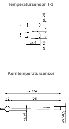 溫度傳感器外包環(huán)氧樹脂用于測試無法接近位置的溫度例如手套內(nèi)的,核心溫度傳感器專門用于測量肛門/直腸的溫度。這兩種溫度傳感器通