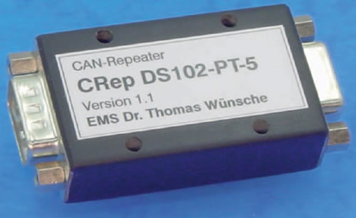 CRep DS 102設(shè)備包含2個CAN段,連接D- Sub 9的公和母插頭。