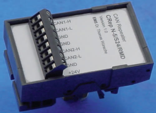 這款總成導軌安裝式的CAN中繼器CRep N以協(xié)議透明的途徑傳輸和放大CAN信號。
