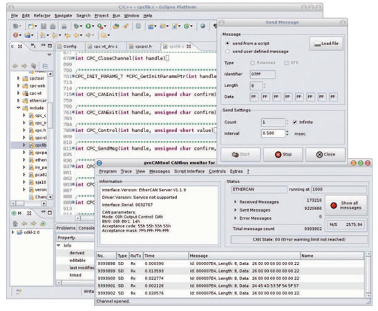 EtherCAN包含所有源文件和編譯工具,滿足開發(fā)EtherCAN CI應(yīng)用程序的需要。也包含詳細(xì)的例程,它使開發(fā)此平臺(tái)的復(fù)雜應(yīng)用程序的起步階段簡(jiǎn)單易行。