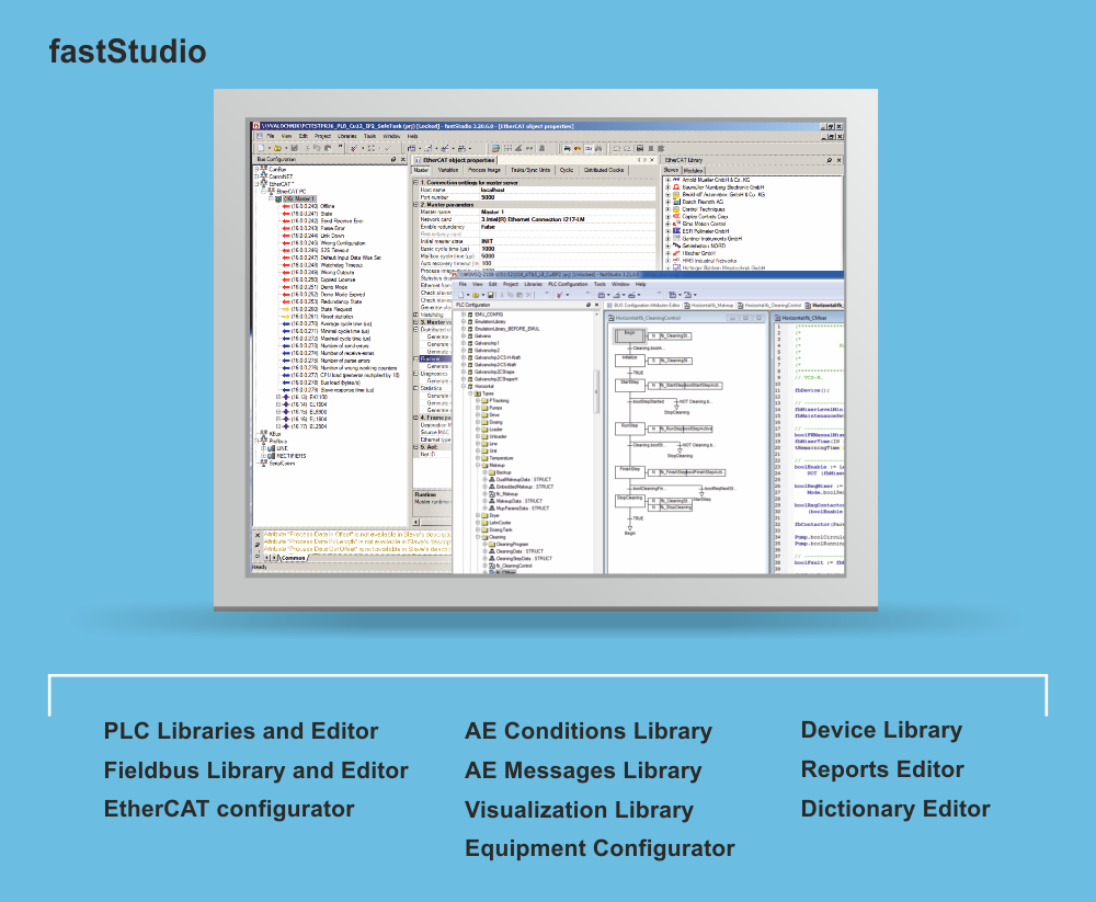 fastStudio – 全面集成的開發環境,可創建應用程序從低端控制設備直到SCADA系統。 |
