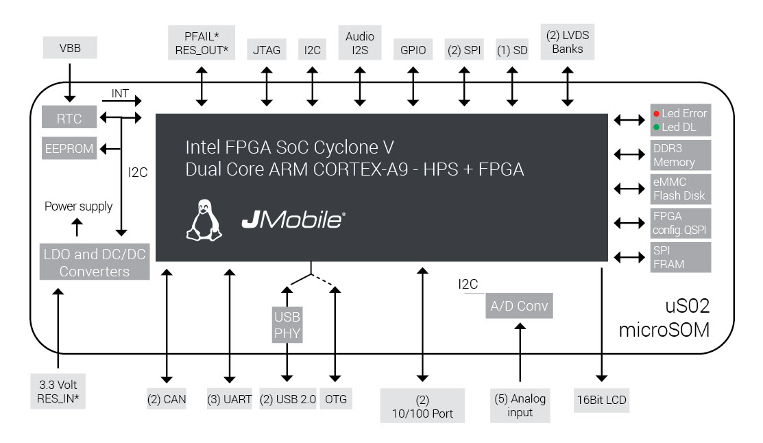 microSOM uS02基于Intel Cyclone V SE SoC的新microSOM標準,以提高對系統性能的要求。