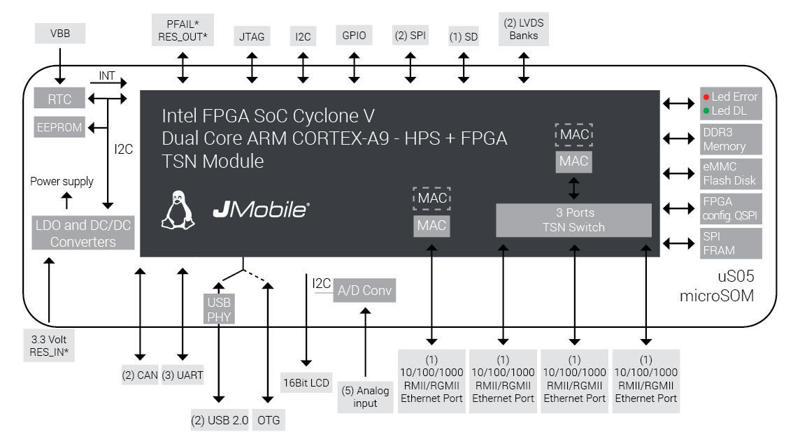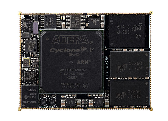 - microSOM需要3.3 V的單電源且具有低功耗(最大0,9 Amp 110K LE)。