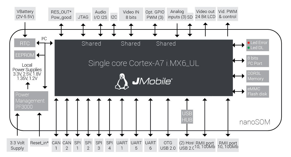 Exor嵌入式nS01是基于SOM的高度創新、高性能、高效、超緊湊和經濟的i.MX 6 UltraLite CPU ARM Cortex-A7內核。
