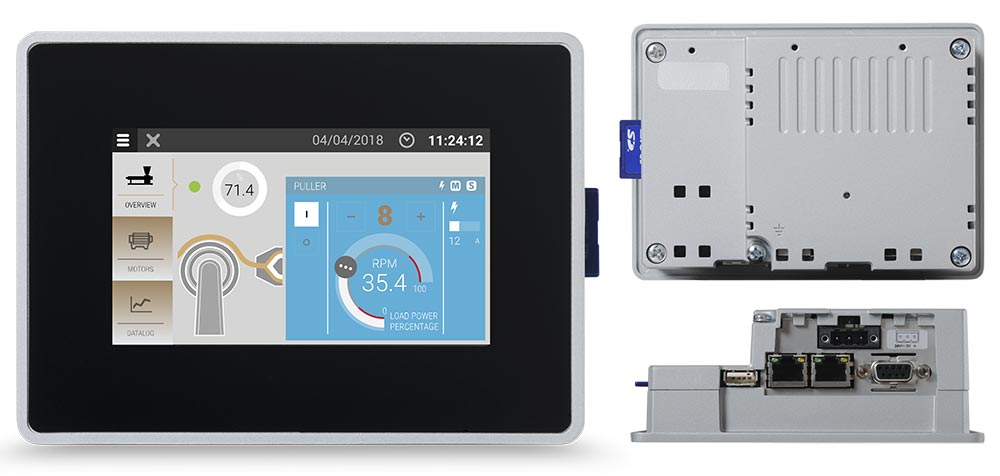 具有以太網接口的4.3英寸TFT彩色觸摸屏面板。銀色前面板。Mobile runtime。 |
