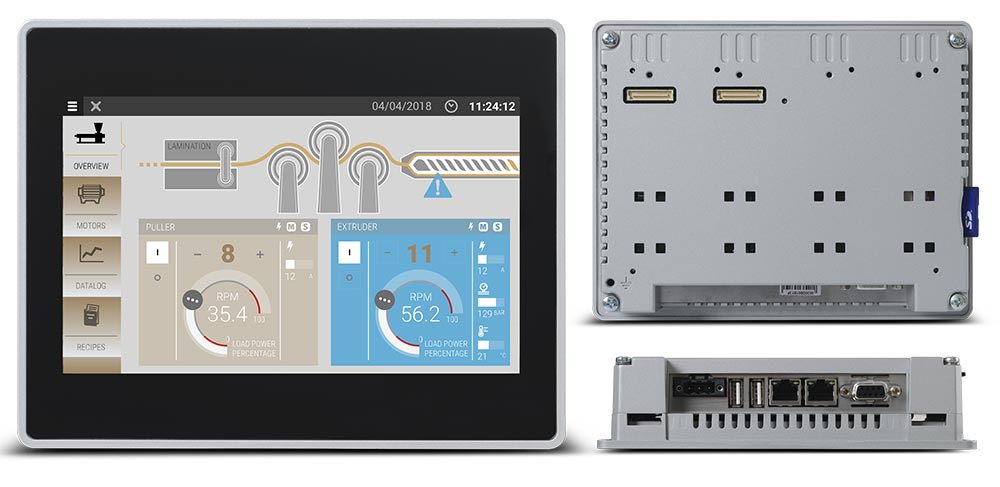 具有以太網和USB接口的7英寸寬屏TFT彩色觸摸屏。銀色前面板。JMobile runtime。 |