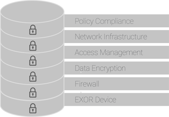 根據(jù)新的工業(yè)標(biāo)準(zhǔn),EXOR有多個安全層,允許盡可能多的客戶端被保護,但同時能夠真正地進行他們的業(yè)務(wù)。安全性必須展現(xiàn)和魯棒性但不能妨礙運作需要。這就不穩(wěn)定的平衡點,其是我們和客戶一起工作要實現(xiàn)的。 |