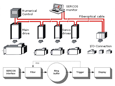 在SERCOS系統中,SERCOS監控軟件支持數據傳輸的監測。因此,可以嵌入到光纖環中作為最后一個節點,且優先于控制器(SERCOS主站)。在該節點上,所有的報文都能被記錄和觀測。