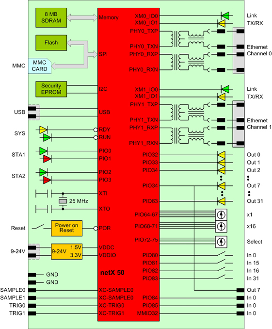 有時候是市場做出了決定,設備制造商必須針對一個完整的系統,結合其它的網絡對象來測試他們的設備。從站設備需要易于操作,并且經濟靈活,例如:片上系統networX的NXIO板。它是一個適合所有以太網系統的開關量IO板,不同的以太網協議由相應的MMC卡來決定。