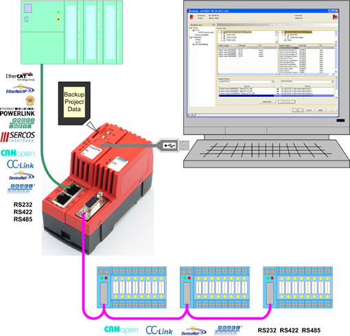 目前,工廠自動化的通訊技術正在經歷一次技術的革新,從傳統的現場總線技術到實時以太網的過渡。無論是在已有的現場總線設備上進行實時以太網接口的擴展,還是在原有設備中集成以太網接口,都必須實現原有系統向新系統的數據傳輸。網關可以提供兩種協議之間的接口,并且實現兩者間的數據傳輸。目前最重要的現場總線協議如CC-Link,CANopen,DeviceNet,PROFIBUS和實時以太網協議EtherCAT, Ethernet/IP, Modbus TCP, POWERLINK, PROFINET,SERCOS III,如果加上作為主站和從站的區別,兩種協議之間可能的組合將達到400種。若再加上一些簡單的串口協議如RS232, RS422, RS485, 這樣的組合將達到1000種之多,因此需要1000多種網關。如此之多的設備只能通過用戶和項目定制,或者通過模塊化的形式。