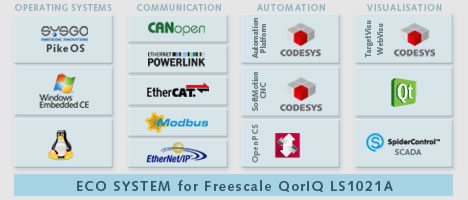 QorIQ LS1021A, dual-core ARM Cortex™-A7 with 1GHz, FPU and Neon co-processor |