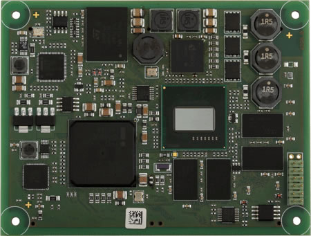 The Development Board included in the Kit facilitates quick commissioning of the ECUcore-E660 and simplifies the design of prototypes for user-specific applications based on this module. The Development Board features several possibilities for power supply, two Gigabit Ethernet interfaces, connections for CAN bus, USB, HD audio, two SATA ports, SD card slot, LVDS and serial DVO display support. 4 push buttons and 4 LED as control elements for the digital in- and outputs. As control elements for the digital in- and outputs, the Development Board contains a push button, three LED and a potentiometer for analog input. Signals that are available from plug connectors of the ECUcore-E660 are linked to pin header connectors and enable easy connection of own peripheral circuitry.