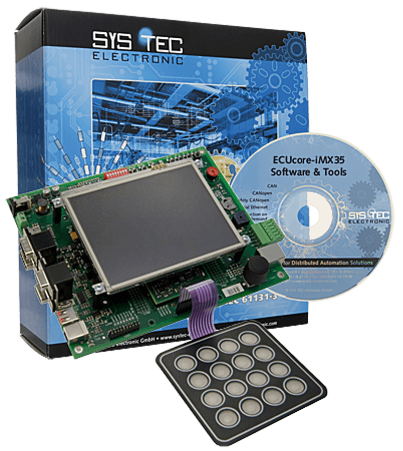 ECUcore-iMX35, Development Board ECUcore-iMX35, 5.7“ TFT-LCD touch display, 4x4 Matrix Membrane Keypad, Power supply, Set of cables, DVD VMware Image Linux - ECUcore-iMX35 |